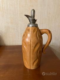 Il corpo del thermos è in legno sapientemente intagliato con un motivo a foglie o a nocciola, che gli conferisce un fascino unico.