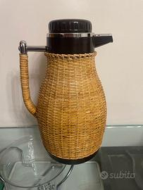 Thermos vintage Zojirushi VGR-1000 - stile retrò autentico! Rivestito in rattan intrecciato a mano. Doppia parete sottovuoto per isolamento efficace. Mantiene bevande calde/fredde per ore. Coperchio pulsante e maniglia ergonomica. Elemento decorativo dal design affascinante. Caratteristiche: •Marchio Zojirushi qualità •Rattan intrecciato mano •Doppia parete sottovuoto •Isolamento termico efficace •Coperchio pulsante •Maniglia ergonomica Misure: •Diametro: 0,15 m •Altezza: 0,25 m Utilizzi: •Mantenere bevande calde/fredde •Picnic e gite •Decorazione cucina vintage •Regalo elegante Stato: nuovo, mai utilizzato, tenuto in esposizione Marca: Zojirushi Stile: Vintage rattan