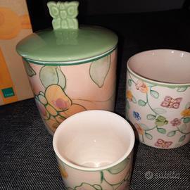 Thun bellissimo set cucina comprende 1 barattolo con coperchio altezza 14,5cm +vaso contenitore altezza 8cm +vasetto contenitore altezza 6cm +coppia porta sale/pepe +1 Striscia Runner cotone arancione Ottimo Regalo per Natale!!!! totale 7 pezzi