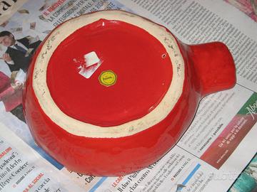 Salve a tutte le persone appassionate degli oggetti prodotti da THUN; ho trovato questo vecchissimo oggetto in ceramica, potete vedere il bollino applicato sul retro riportante la dicitura THUN BOLZANO -BOZEN ITALY......quindi si tratta di vecchio oggetto prodotto agli inizi della attività della famosissima azienda THUN di Bolzano. Stiamo parlando di un vecchio poggia utensili da cucina, tipo mestoli, cucchiaioni ecc. Misura cm.20 nella parte più lunga, cm.15,5 nella parte più corta e ha uno spessore di cm.5. L'oggetto è in perfette condizioni, no crepe, no sbeccature non mancanze di colore. Naturalmente oggi non è più in produzione, quindi molto difficile da repereire. Oltre al bollino che vedete in foto non trovo altri marchi sulla ceramica a differenza degli oggetti prodotti oggi che sono marcati sulla ceramica. Spero di essere stato abbastanza esaustivo, rimango comunque a completa disposizione per domande, chiarimenti e ho anche altre foto disponibili per chi me le volesse richiedere. Ringrazio tutte le persone che visiteranno l'inserzione e resto in attesa di un riscontro.