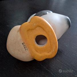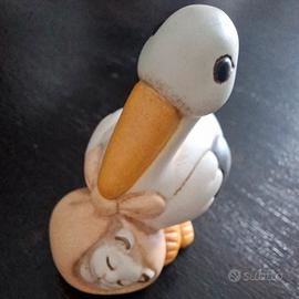 Cicogna con gattino nel fagotto in ceramica decorata Thun. Altezza circa 6.5 cm Senza scatola