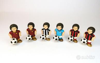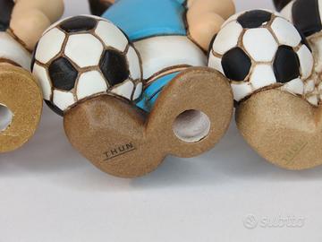 THUN Offerta Sportiva Speciale. Stock originale di 6 calciatori nuovi a soli €65 invece di €120. Attenzione: le confezioni non sono in perfette condizioni Una proposta rara e simpatica dedicata agli appassionati di calcio e ai collezionisti THUN. Disponibile stock completo composto da 6 calciatori in ceramica decorata, tutti nuovi, perfetti e pronti da esporre o regalare. Il lotto comprende: 2 calciatori stile Milan rosso nero 2 calciatori stile Roma rosso amaranto 1 calciatore stile Juventus bianco nero 1 calciatore stile Lazio celeste bianco Ogni soggetto è realizzato nel classico stile THUN, con linee morbide, espressione dolce e pallone decorativo frontale. Sono pezzi ideali per cameretta, studio, collezione privata, vetrina sportiva o regalo originale per tifosi di ogni età. Condizioni prodotto: Tutti nuovi Stock perfetto Nessuna rottura Nessun difetto visibile Colori brillanti e integri Misure indicative: altezza circa 8 / 11 cm a seconda del modello Valore indicativo singolo pezzo sul mercato da circa €19,90 cadauno in su, con versioni speciali anche superiori
