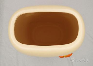 Altezza circa 25 cm. Diametro 16 cm. Struttura ampia con bordo sagomato e decorazioni floreali in rilievo tipiche della linea Happy Country.