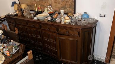 Salotto completo in legno, mobile vetrina + alzata intarsiata + tavolo con 6 sedie + contromobile, no tavole di compensato, si svende in blocco, causa ri-arredo, ovviamente senza oggettistica solo i mobili, unica condizione per l’acquisto, venire a ritirarlo 👍🏻