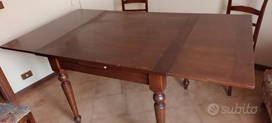 Composto da mobile lungo 1.95mt largo 0,65mt +tavolo 1mt x 1mt chiuso e 1,80mt aperto + 4 sedie e 1 poltroncina , con segni di usura , sono disponibile a scambiarli con articoli casalinghi