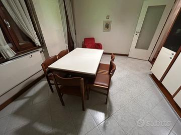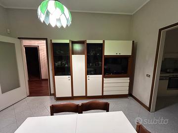 Mobile tinello (260 cm) con tavolo e 6 sedie Noce e laccato bianco