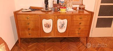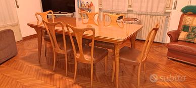 Tinello in legno Vintage Anni '60, usato in ottime condizioni, composto da 9 elementi in totale. Dettaglio: - N.1 Tavolo con piano in vetro: 187 X 98 cm h 80.5 cm - N.6 sedie imbottite - N.1 Credenza lunga: 245 X 53 cm h 94 cm - N.1 Credenza bar: 170 X 53 cm h 94 cm Vendibile completo o a pezzi singoli. Scrivere in chat per domande. No telefonate, please. Ritiro in loco. L'organizzazione del ritiro è interamente a carico e responsabilità dell'acquirente. Preferibilmente cash.