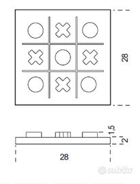 GALLOTTI&RADICE è un gioco da tavolo realizzato in marmo Nero Marquinia e ottone, le pedine sono in ottone lucido e satinato. TIP TAP TOE è un antico gioco che diverte grandi e bambini, chiamato TRIS, viene giocato da due giocatori; uno di essi giocherà utilizzando le crocette, l'altro dei cerchi. Si gioca su una griglia di 3 x 3 caselle (9 caselle totali). Il giocatore di turno occupa una delle caselle con il suo simbolo, poi cede la mossa all'avversario. Vince il primo giocatore che riesce ad ottenere un "tris", ovvero tre simboli adiacenti in riga, in colonna o lungo una delle diagonali. Se tutte e 9 le caselle vengono occupate senza che uno dei giocatori abbia ottenuto un tris, la partita termina con un pareggio. Grande gioco d'intelligenza!!!!!!