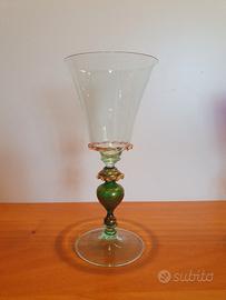 Tipetto Veneziano Vetro soffiato di Murano Verde chiaro, oro e rosa splendido e perfetto !