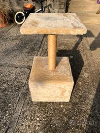 Tiragraffi per gatti in tessuto beige con base a cubo rivestita in peluche, dotata di tana chiusa con ingresso rotondo, palo centrale in corda di sisal per affilare le unghie e piattaforma superiore imbottita per il riposo e l’osservazione. Ideale per gatti cuccioli o di taglia piccola/media, perfetto per farli giocare, nascondere e dormire.