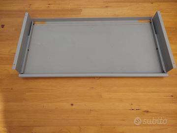 Vendo tiretto, da posizionare sotto il piano della scrivania, per alloggiare la tastiera del pc o laptop o ipad. Molto robusto, realizzato il acciaio verniciato grigio, funzionante su guide metalliche.