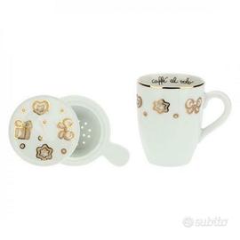 Vendo nuova e pratica tisaniera della THUN. Perfetta per mantenere calde le tisane grazie al pratico coperchio di cui è dotata la tazza. Impreziosita dalle classiche icone THUN che risplenderanno in un elegante decoro con decalco color oro. Materiale: porcellana sotto smalto Capienza Tazza: 300Ml Pulizia e cura: Lavabile a mano e in lavastoviglie Packagin: Scatoletta originale Thun con garanzia