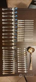 Vendo elegante servizio di posate vintage, finemente lavorate con decoro a conchiglia (stile Settecento/Inglese). Le posate presentano la marcatura ARG 800, che indica una pregiata placcatura in argento.
