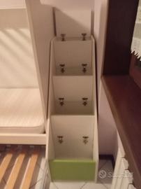 Scaletta a moduli: La scala laterale non serve solo per salire, ma ogni gradino è un vano contenitore (apertura a botola) ideale per riporre giochi, coperte o vestiti.