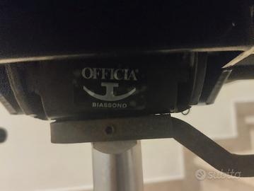 Poltrona ufficio vintage anni ’70 in legno – Officia Biassono – girevole Prezzo: €300 (trattabili) Descrizione: Bellissima poltrona da ufficio originale anni ’70, produzione italiana marchiata Officia Biassono. Struttura in legno curvato → tipico design italiano anni ’60-70 ✔ Base a stella in legno → (no plastica/metallo economico) ✔ Linee pulite moderniste ✔ Meccanismo regolazione presente Struttura elegante in legno curvato con base a stella e ruote, seduta e schienale imbottiti e rivestiti in tessuto nero. Linee pulite tipiche del design modernista italiano dell’epoca. La poltrona è girevole e regolabile in altezza, perfetta sia come sedia da scrivania che come pezzo d’arredo vintage. Condizioni ottime per l’età: struttura solida e funzionante, tessuto con normali segni del tempo. Ideale per amanti del modernariato, design anni ’70 o per arredare studio/ufficio con stile. Caratteristiche: Epoca: anni ’70 Produzione: italiana (Officia Biassono) Materiali: legno, tessuto Funzioni: girevole, regolabile in altezza. Perfettamente funzionante. Ritiro: Preferibile ritiro a mano. Contattami per info o altre foto.