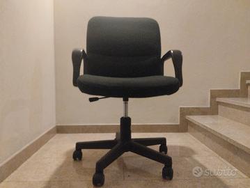 Titolo: Poltrona ufficio vintage anni ’70 – girevole Prezzo: €150 Descrizione: Bellissima poltrona da ufficio originale anni ’70, produzione italiana. tipico design italiano anni ’60-70 ✔ Base a stella in metallo ✔ Linee pulite moderniste ✔ Meccanismo regolazione presente Struttura elegante curvata con base a stella e ruote, seduta e schienale imbottiti e rivestiti in tessuto nero. Linee pulite tipiche del design modernista italiano dell’epoca. La poltrona è girevole e regolabile in altezza, perfetta sia come sedia da scrivania che come pezzo d’arredo vintage. Condizioni ottime per l’età: struttura solida e funzionante, tessuto con normali segni del tempo. Ideale per amanti del modernariato, design anni ’70 o per arredare studio/ufficio con stile. Caratteristiche: Epoca: anni ’70 Produzione: italiana Funzioni: girevole, regolabile in altezza. Perfettamente funzionante. Ritiro a mano. Contattami per info o altre foto.