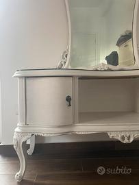 Elegante mobile toeletta originale anni ’60 in legno massello, restaurato e dipinto di bianco.