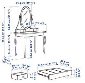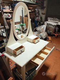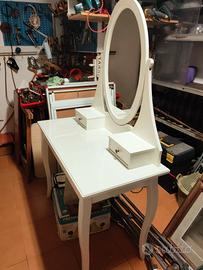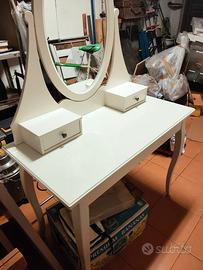 Vendo toeletta bianca con specchio marca Ikea, modello Hemnes. Dimensioni 100x50x160 con 2 cassetti portagioie e 1 casseto grande. Piano ricoperto da vetro.
