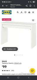 toeletta malm con vetro sopra ancora venduta da ikea con cassetto. vendo per trasloco. ritiro a carico dell'acquirente in zona chiaia (via M. Schipa)