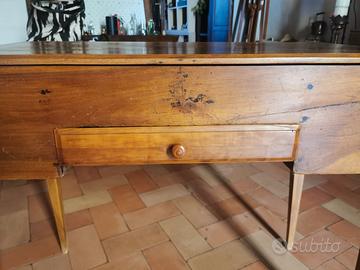 Toeletta da camera con piano e specchiera chiudibile e cassetto portagioie. Legno di noce, inizi '900
