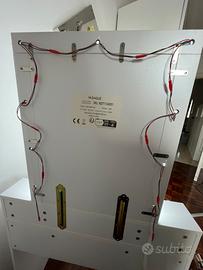 Ampio specchio con 9 luci (+1 di scorta) da 50x60cm. Presenta due cassetti facili da organizzare e un rialzo con 3 scomparti. Vendo già montata, per il ritiro ci si accorda per Calcinao o Brescia, previo accordo.