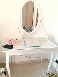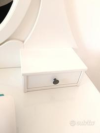Vendo toeletta Ikea HEMNES ,misure 100x50 con ripiano in vetro e 3 cassetti, oltre che specchio quasi perfetta, solo un difetto che si può coprire tranquillamente con un po' di pittura bianca.. prezzo 80€ In vendita su Ikea a €199