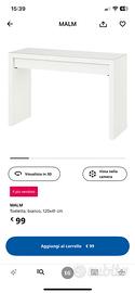 misure 120x41 La striscia adesiva si stacca ma sotto non è bianchissimo come il resto della scrivania. Il cassetto si chiude a fatica ma con un po’ di olio si sistema. Ikea toeletta malm bianca