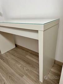 Vendo toeletta/scrivania modello Malm di IKEA, colore bianco, con piano in vetro protettivo.