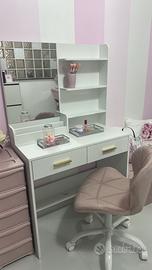 Scrivania/Toeletta trucco bianca con sedia rosa. Completamente nuovi, acquistati una settimana fa.