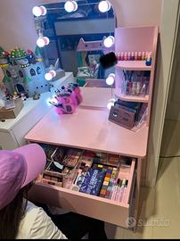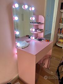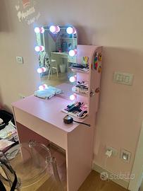 Toeletta trucco rosa con cassetto, specchio e luci 70 x 140 × 40