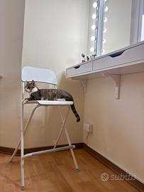 Toeletta trucco a sospensione con cassetti estraibili, staffe, sgabello alto, lampade a parete incluse lampadine, VENDO ANCHE SINGOLI PEZZI.