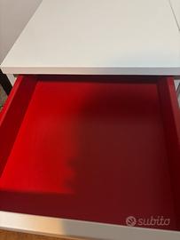 Toeletta trucco, bianca con interni rossi, nuova, misure 70x42x77