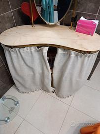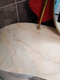 toeletta trucco con piano in marmo, specchio, un ripiano sotto, la tendina è nuova.