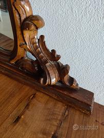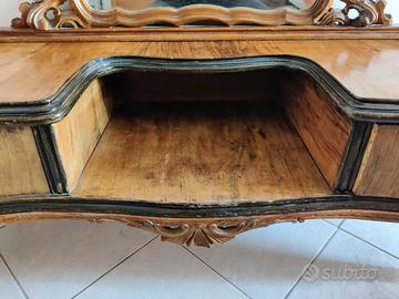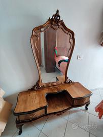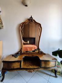 Elegante toeletta in stile barocco veneziano, risalente agli anni ’50/'70 circa, gambe scolpite e specchiera sagomata originale.