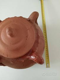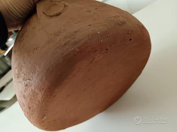 Tofeja canavesana con coperchio: tradizionale pentola in terracotta di Castellamonte nel canavese (Piemonte). Antica ma mai adoperata come si vede dal fondo della pentola, tenuta come oggetto d'arredo. Perfetta, molto bella. Misure presenti in foto.
