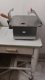 Macchina togliosso manuale per prosciutto crudo, completamente in acciaio inox, misure in cm. montata nel carrello a 4 ruote L.61 P.40 H.100. Compreso nel prezzo parananza antitaglio a squame lamellari. SOLO VERAMENTE INTERESSATI, NO PERDITEMPO, RITIRO SUL POSTO ZONA FORLI'.