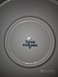 Set di 4 piatti in ceramica Tognana, perfetti per servire la pizza. Il design è vivace e colorato, con decorazioni a tema pizza e ingredienti.