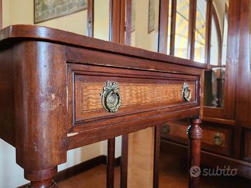 Mobile in legno massiccio (mogano) ben tenuto con specchiera tripla orientabile e piano con vetro.