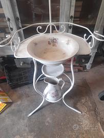 Toiletta antica in ferro battuto cosa particolare che ha due cassetti se ne vedono poche ha ancora il suo specchio al piombo e corredato di brocca catino firmati fate pure un offerta e la valuto un euro è solo simbolico ritiro a carico dell acquirente