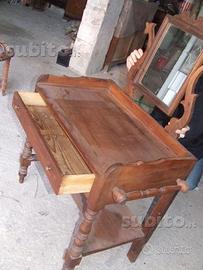 Vecchia toiletta in noce massello gambo tornitocon cassetto, porta asciugamani, specchio girevole il mobile e' gia' stato restaurato resta solo la lucidatura misure cm. 90x47 altezza fino allo specchio cm. 127