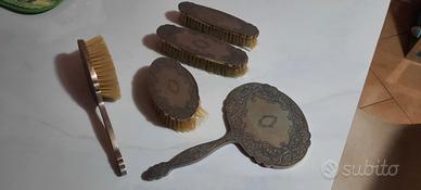 set toilette in argenti, spazzole e specchio