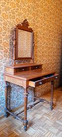 toilettecon specchiera a bilico, risalente indicativamente allaseconda metà del XIX secolo. Il mobile è in legno di noce con gambe tornite e linee eleganti