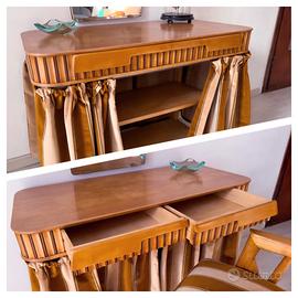 Toilette degli anni 50 con specchio e poltroncina, in condizioni molto buone del periodo.