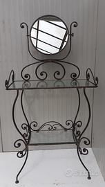 Toilette da bagno in ferro battuto artigianale interamente fatta a mano, compresa di ripiani in vetro più specchio. Misure: h 140, larghezza 69, profondità 37. Prezzo €800 non trattabile