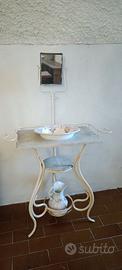 Vendo toilette da camera antica e ben conservato,in ferro battuto con ripiani in marmo grigio,completa di specchio, brocca e catino,inclusi nel prezzo sono stati dipinti a mano.Solo ritiro a mano