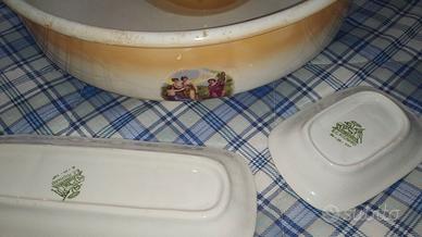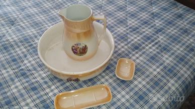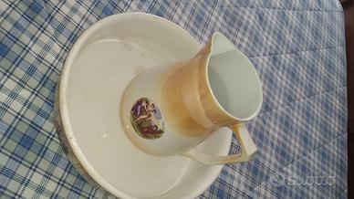Vendo Toilette da camera composta da Lavabo, Vaso e 2 portasapone marca S.C. Richard, con figure litografiche di Angelica Kauffman, epoca inizio del XX sec. Mai utilizzata negli ultimi 50 anni, prima non lo so, è in buone condizioni anche se presenta piccoli segni del tempo sui bordi (come visibile in foto). Vista la fragilità solo ritiro a mano a Genova - Sori - Recco - Sestri levante