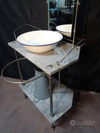 TOILETTE FERRO E MARMO COMPLETA DI BROCCA E CATINO