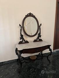 Toilette in stile con elegante specchiera e cuscino poggiapiedi da inserire in una camera da letto. Appena restaurata in ottime condizioni.