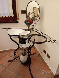 toilette con lavabo, caraffa e specchio. tenuta molto bene. altezza 135cm, larghezza 111cm da non calcolare la lampada colorata al centro.