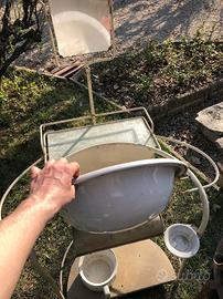 Toilette/petineuse vintage in ferro fine 1800 con specchio, vetro e catini smaltati. Ritiro in loco.